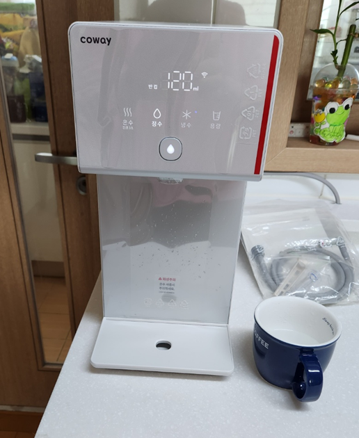 세상에 이렇게 공간차지 안하고 냉수 온수 정수 다 되는 제품이 있네요