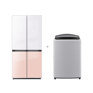 [LG+하이얼] 통돌이 세탁기 17kg 미드프리실버 + 글램글라스 냉장고 433L 글램화이트피치핑크 [T17DX3A+HRS445MNWP]